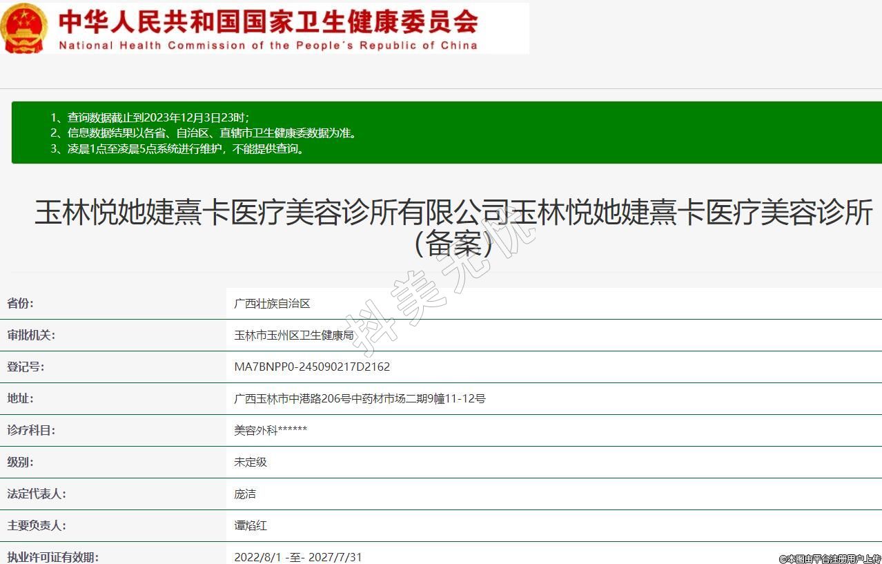 玉林悅她婕熹卡醫(yī)療美容診所有限公司玉林悅她婕熹卡醫(yī)療美容診所(備案)