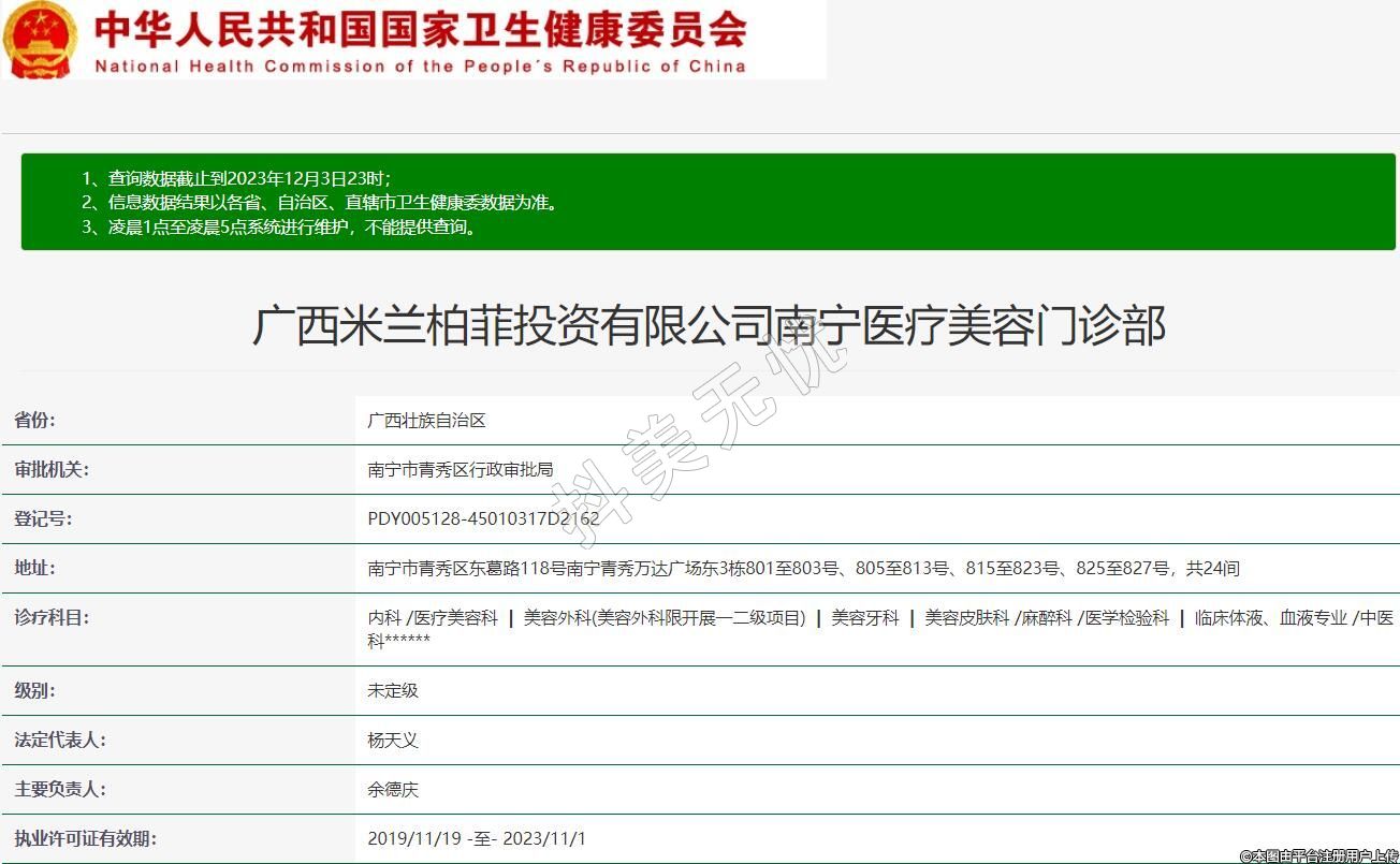 廣西米蘭柏菲投資有限公司南寧醫(yī)療美容門(mén)診部