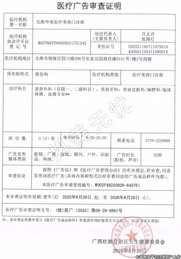 機(jī)構(gòu)名稱:北海華美醫(yī)療美容門診部