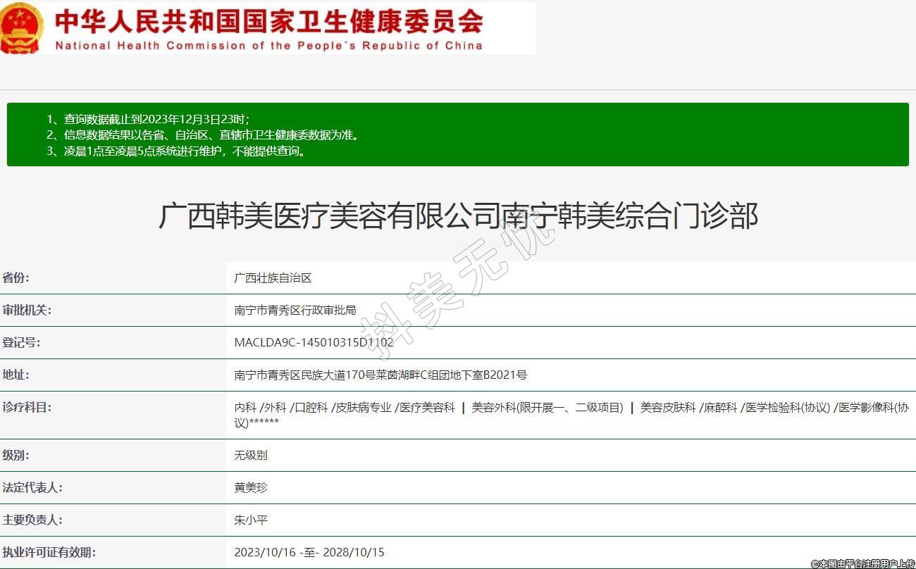 廣西韓美醫(yī)療美容有限公司南寧韓美綜合門診部