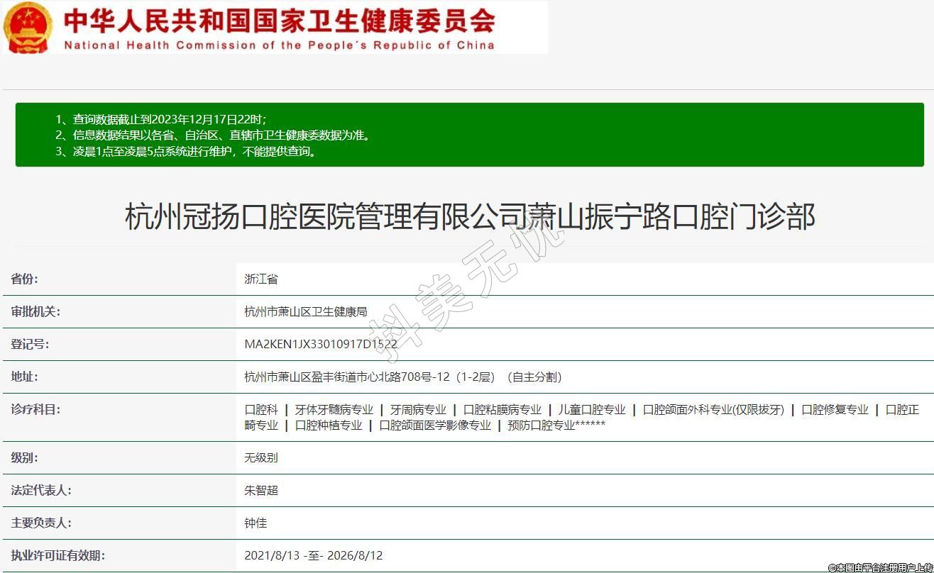 杭州冠揚(yáng)口腔醫(yī)院管理有限公司蕭山振寧路口腔門診部