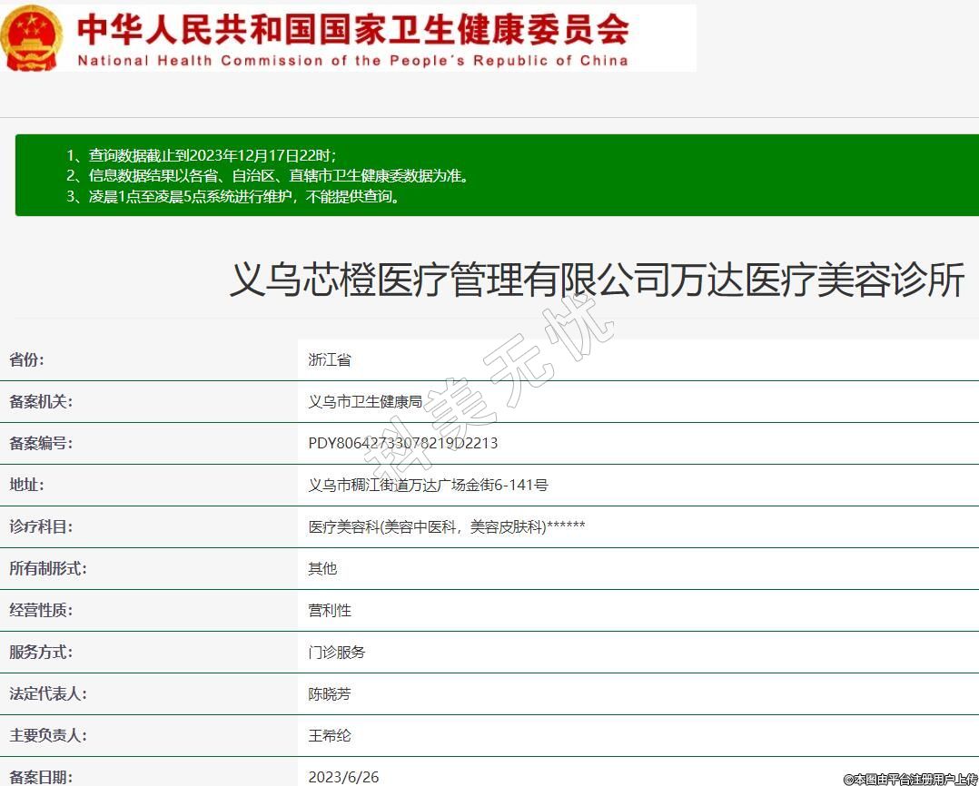 義烏芯橙醫(yī)療管理有限公司萬達醫(yī)療美容診所
