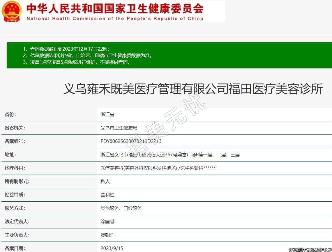 義烏雍禾既美醫(yī)療管理有限公司福田醫(yī)療美容診所