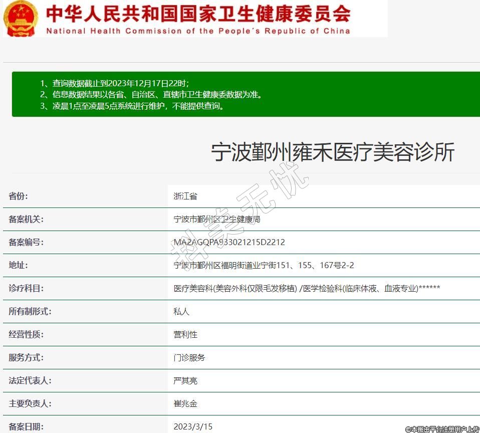 備案機(jī)關(guān):寧波市鄞州區(qū)衛(wèi)生健康局