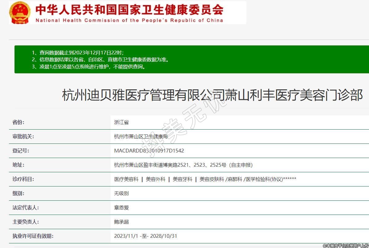 杭州迪貝雅醫(yī)療管理有限公司蕭山利豐醫(yī)療美容門診部