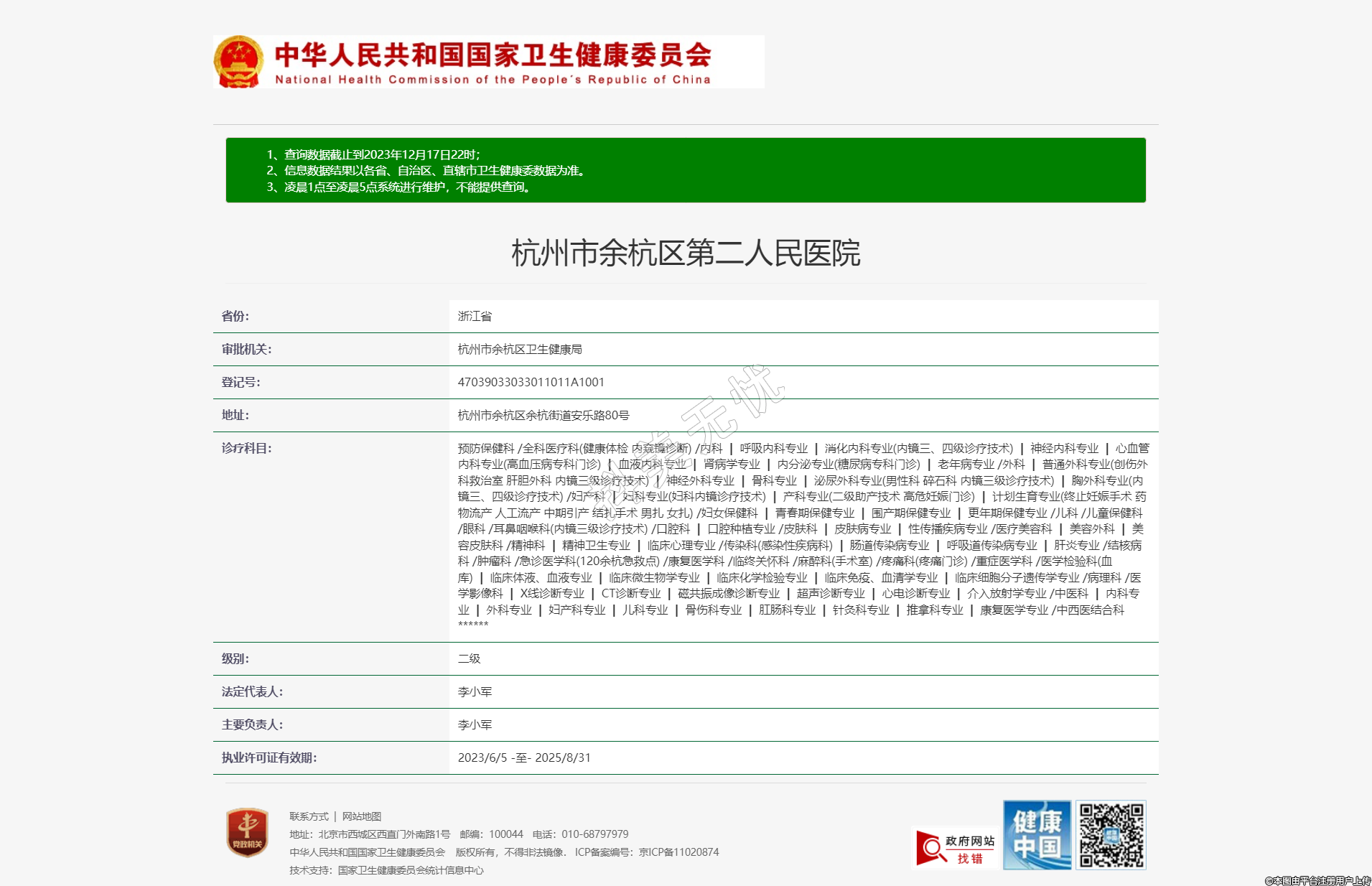 審批機關(guān):杭州市余杭區(qū)衛(wèi)生健康局
