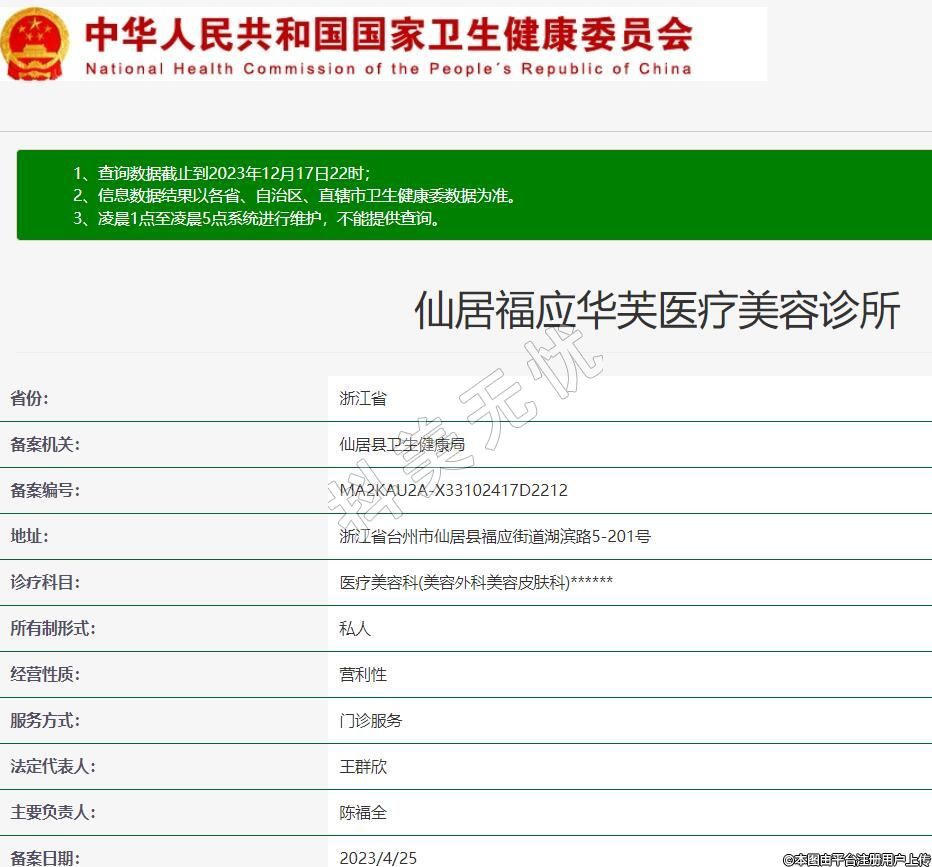 仙居福應(yīng)華芙醫(yī)療美容,醫(yī)療服務(wù) (美容外科、美容皮膚科) 皮膚管理;化妝品批發(fā)零售。