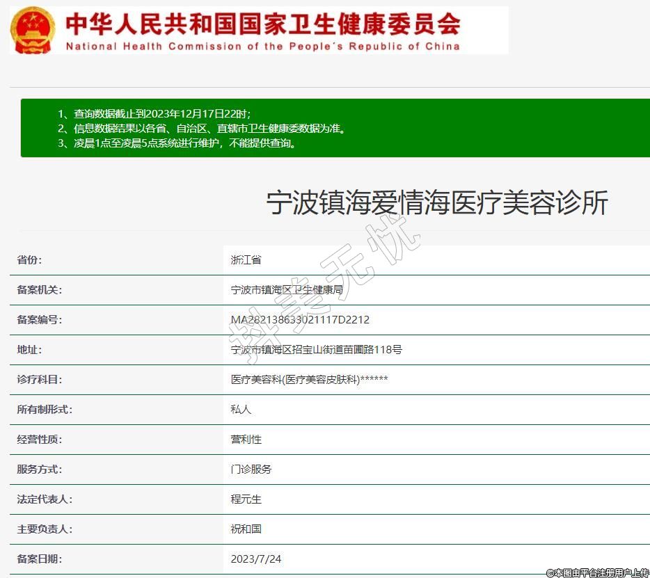 備案機關(guān):寧波市鎮(zhèn)海區(qū)衛(wèi)生健康局
