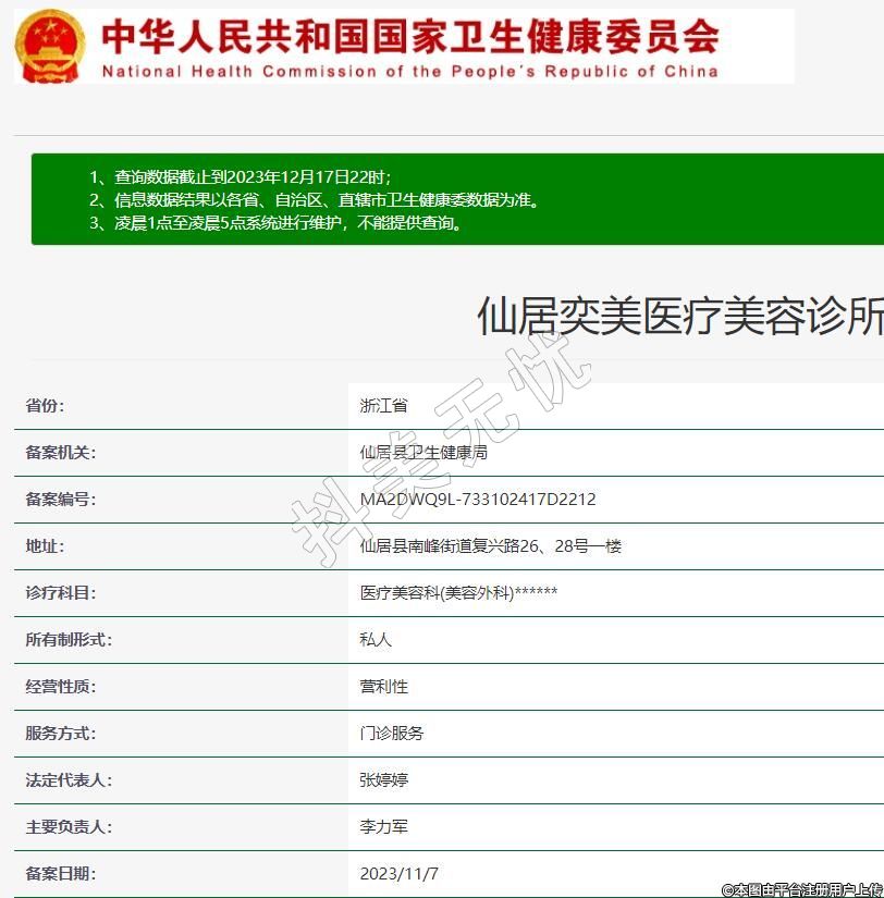 仙居奕美醫(yī)療美容診所,診療科目:醫(yī)療美容科(美容外科)******