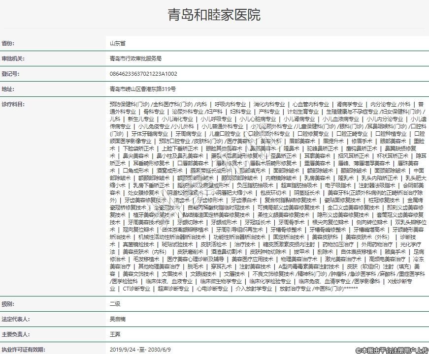 執(zhí)業(yè)許可證有效期:2019/9/24 -至- 2030/6/9