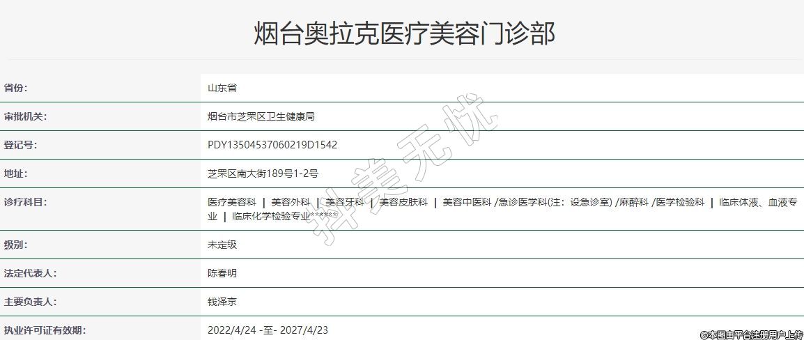 審批機關:煙臺市芝罘區(qū)衛(wèi)生健康局