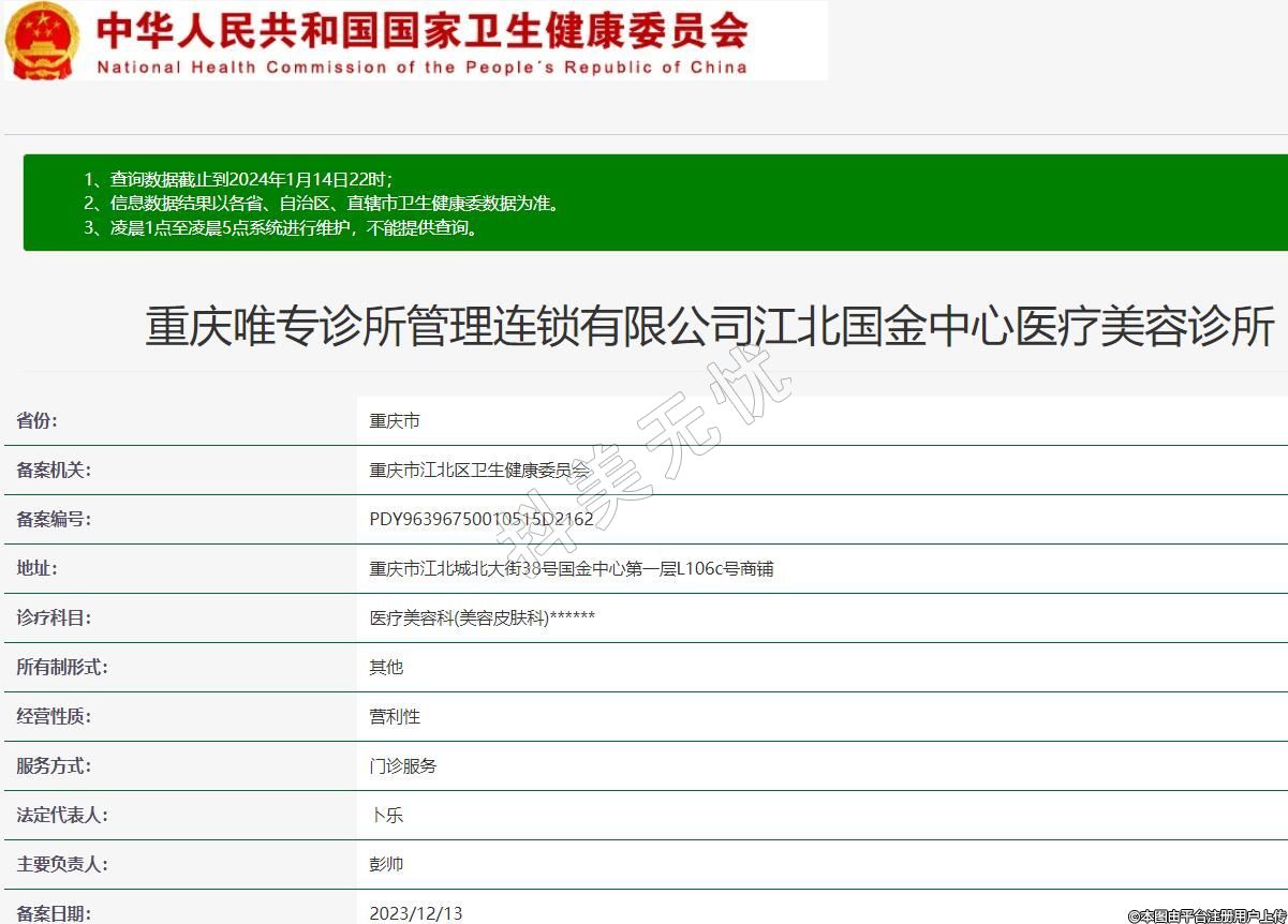 重慶唯專診所管理連鎖有限公司江北國(guó)金中心醫(yī)療美容診所