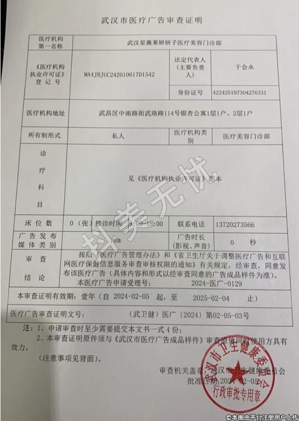 機(jī)構(gòu)名稱:武漢星薇萊妍妍子醫(yī)療美容門診部