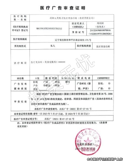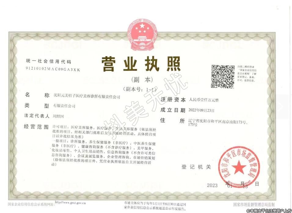 名稱:沈陽元美桔子醫(yī)療美容診所(有限責(zé)任公稱司)