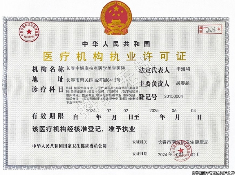 發(fā)證機關:長春市南關區(qū)衛(wèi)生健康局
