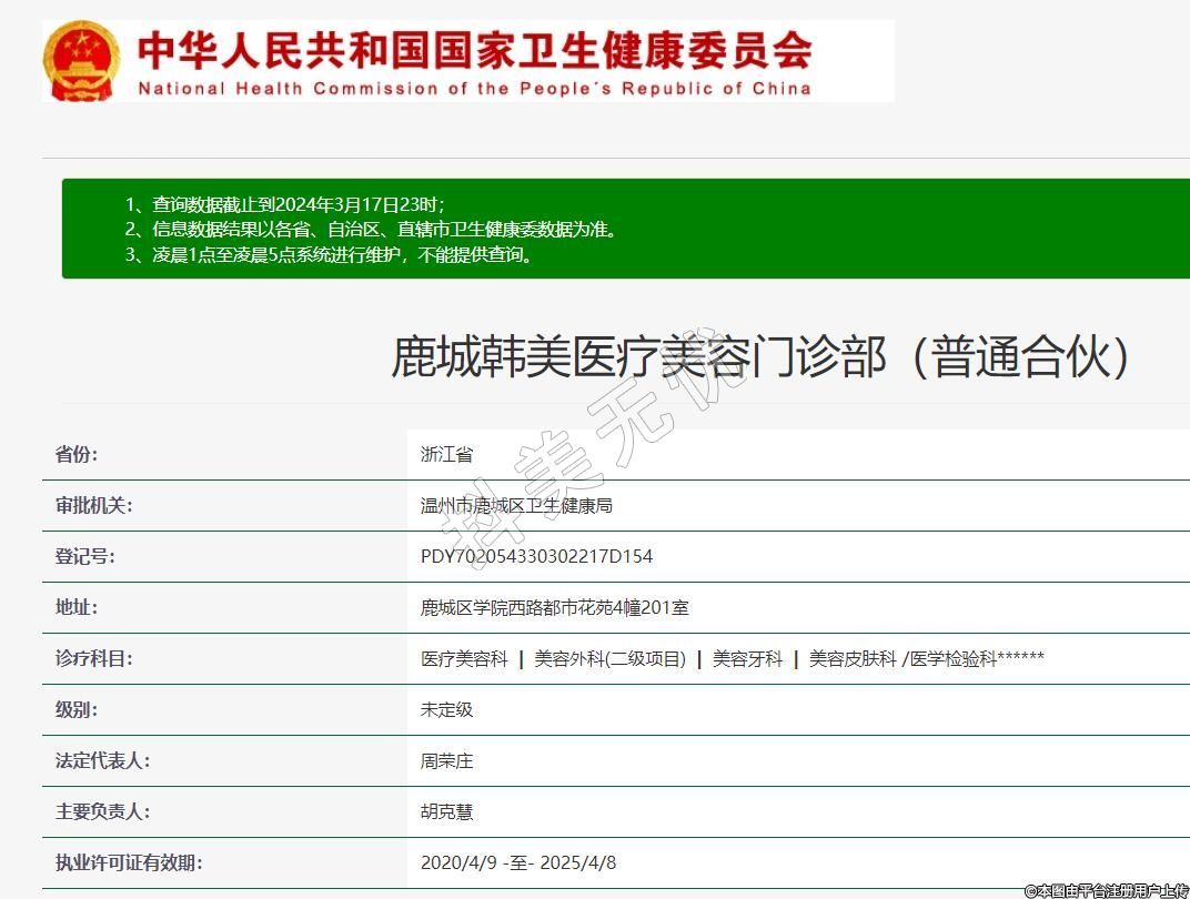 鹿城韓美醫(yī)療美容門診部(普通合伙)