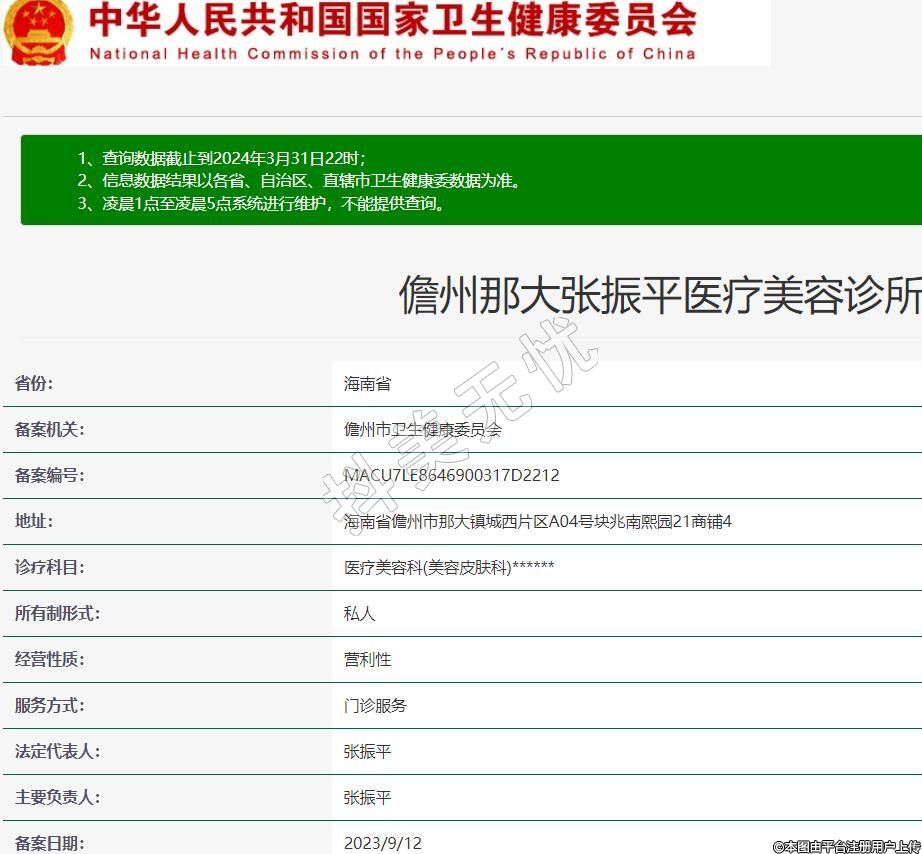 儋州那大張振平醫(yī)療美容診所,診療科目:醫(yī)療美容科(美容皮膚科)******