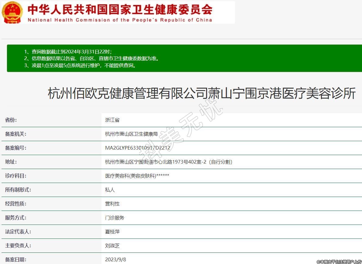 杭州佰歐克健康管理有限公司蕭山寧圍京港醫(yī)療美容診所