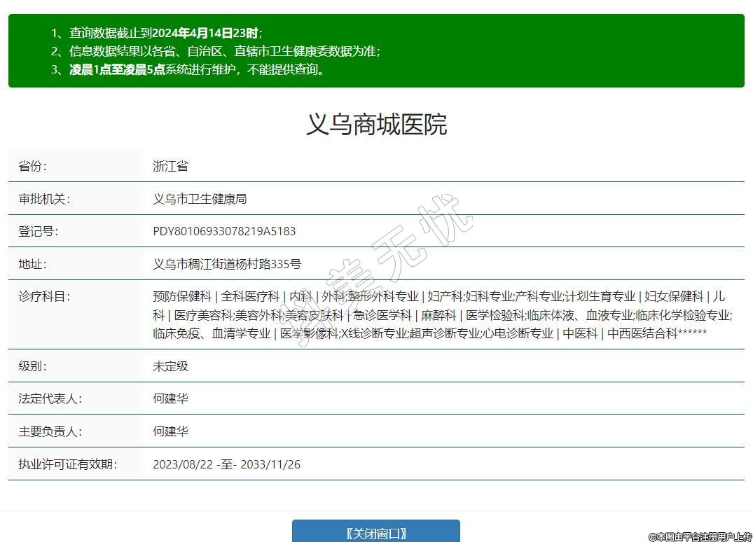 執(zhí)業(yè)許可證有效期:2023/08/22 -至- 2033/11/26