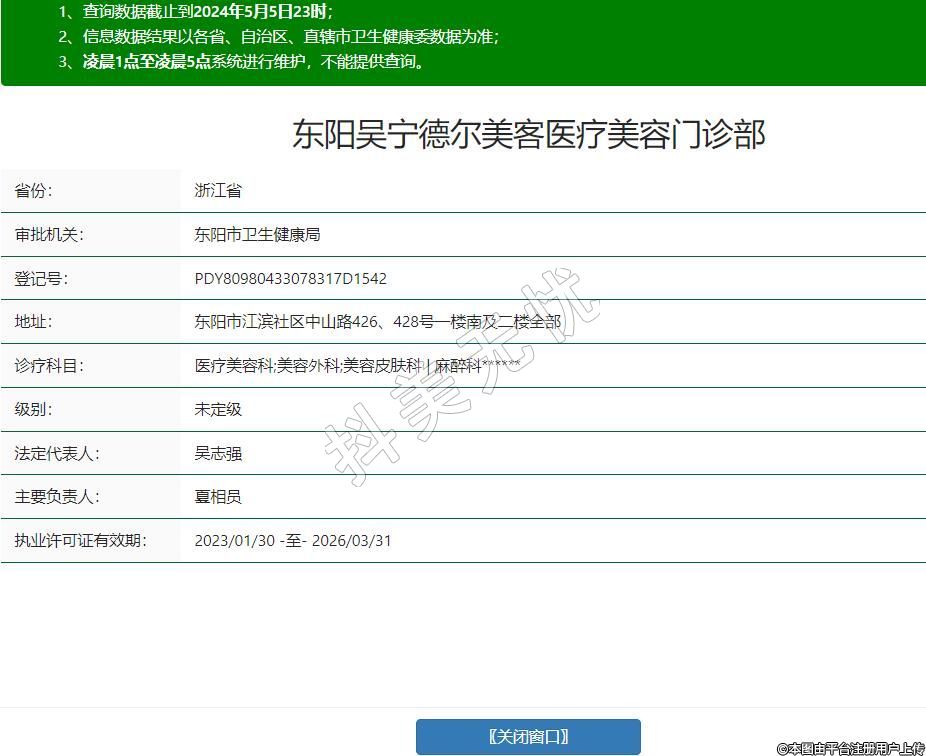 東陽吳寧德爾美客醫(yī)療美容門診部,診療科目:醫(yī)療美容科;美容外科;美容皮膚科 | 麻醉科******
