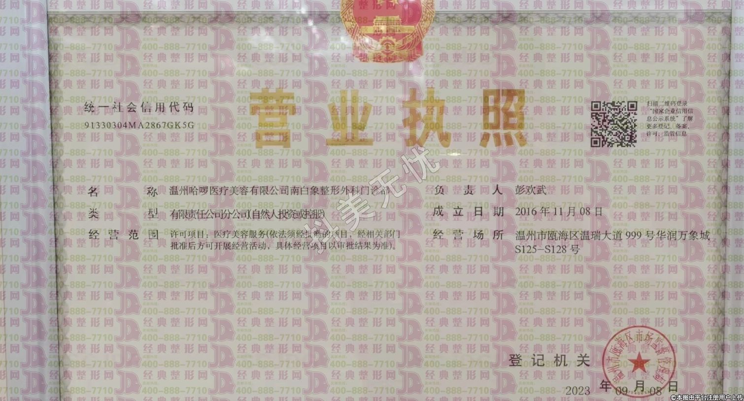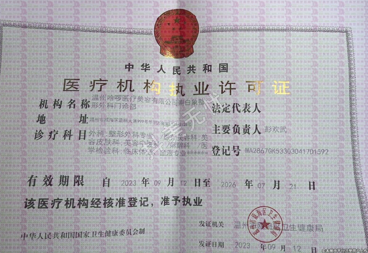 機(jī)構(gòu)名稱:溫州哈啰醫(yī)療美容有限公司南白象整形外科門診部