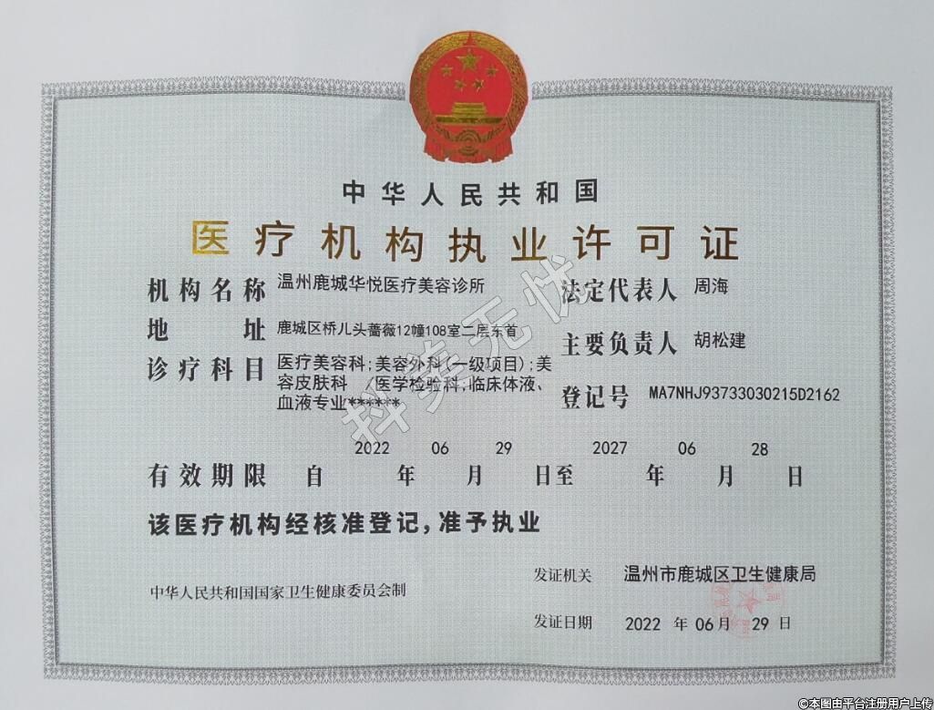 機構(gòu)名稱:溫州鹿城華悅醫(yī)療美容診所