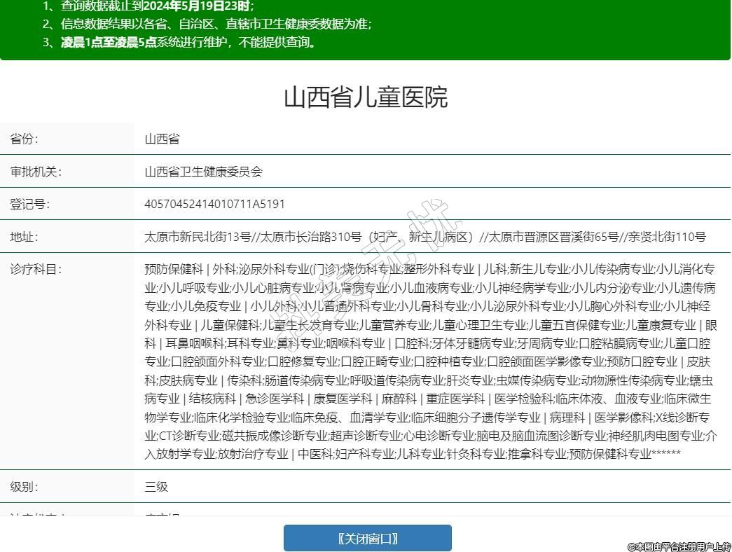 太原市新民北街13號//太原市長治路310號(婦產(chǎn)、新生兒病區(qū))//太原市晉源區(qū)晉溪街65號//親賢北街110號