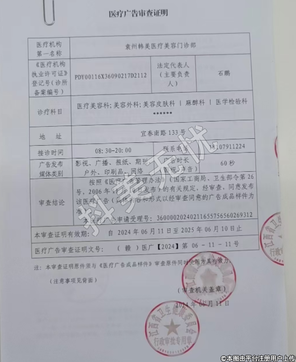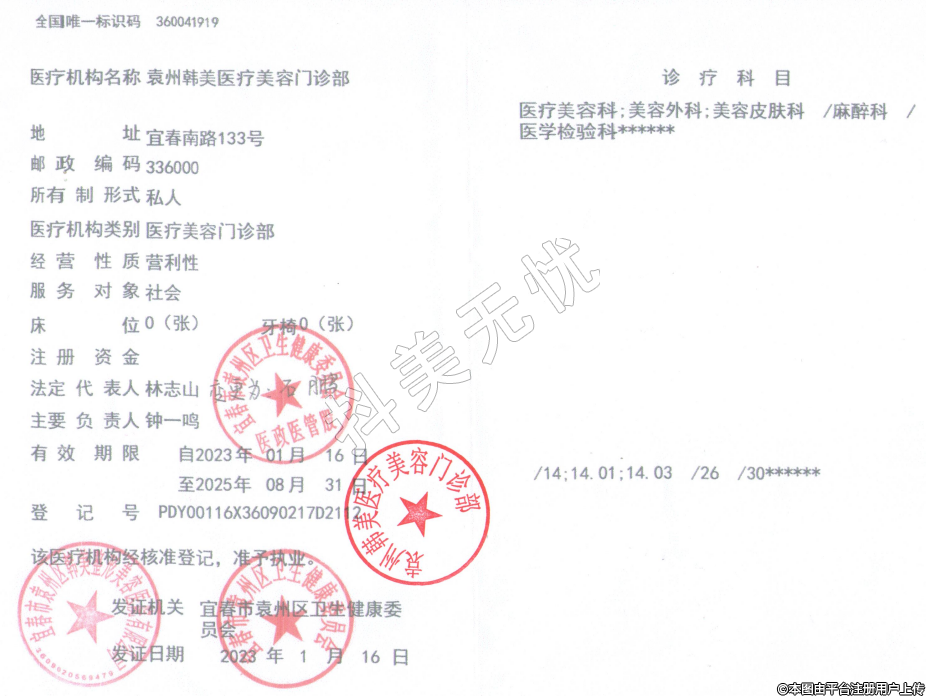 醫(yī)療機(jī)構(gòu)名稱:袁州韓美醫(yī)療美容門診部