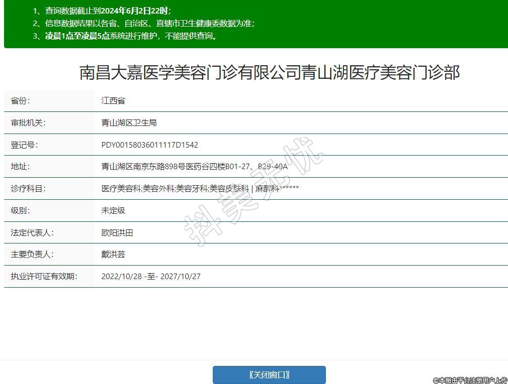 南昌大嘉醫(yī)學(xué)美容門診有限公司青山湖醫(yī)療美容門診部