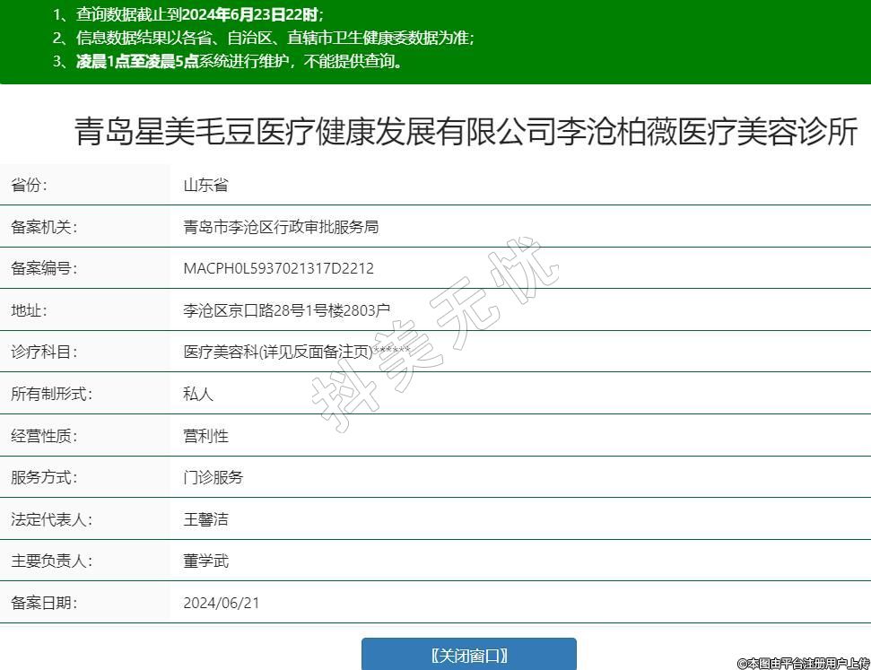 青島星美毛豆醫(yī)療健康發(fā)展有限公司李滄柏薇醫(yī)療美容診所