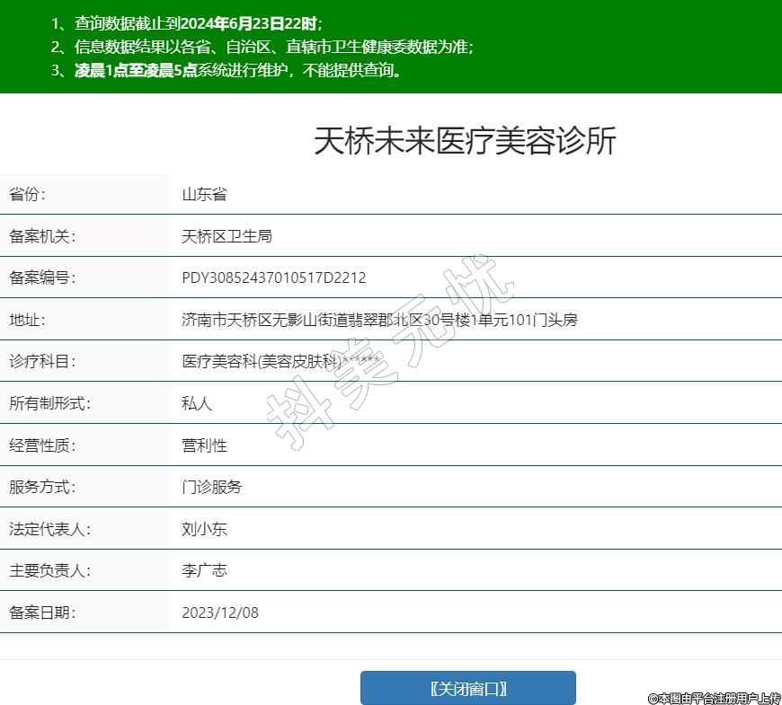 天橋未來醫(yī)療美容診所,診療科目:醫(yī)療美容科(美容皮膚科)******