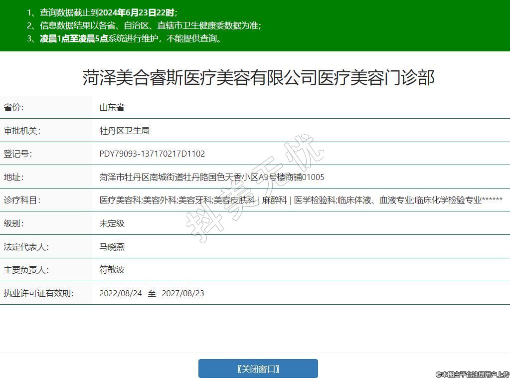 菏澤美合睿斯醫(yī)療美容有限公司醫(yī)療美容門(mén)診部