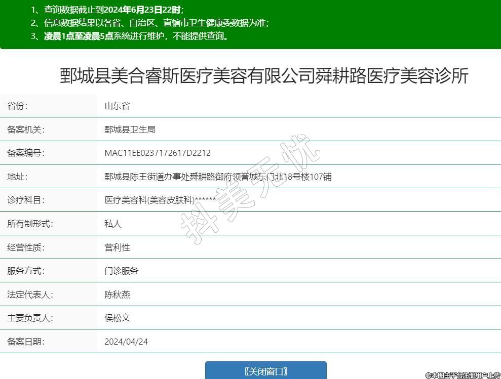 鄄城縣美合睿斯醫(yī)療美容有限公司舜耕路醫(yī)療美容診所,診療科目:醫(yī)療美容科(美容皮膚科)******