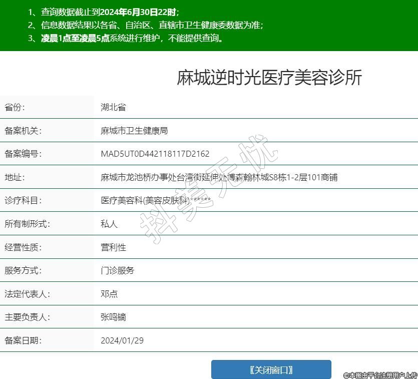 麻城逆時光醫(yī)療美容診所,診療科目:醫(yī)療美容科(美容皮膚科)******