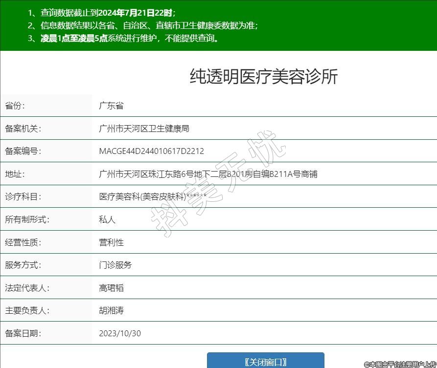 廣州純透明醫(yī)療美容診所于2023年成立,位于廣州市天河區(qū)珠江東路6號地下二層B201房自編B211A號商鋪,是一家以診療便捷化、產(chǎn)品透明化、服務(wù)專業(yè)化為特色的快時尚輕醫(yī)美連鎖品牌機(jī)構(gòu)。以“便捷式細(xì)胞充能站"為品牌定位,以“價格透明、打破買賣方信息不對稱、一站式服務(wù)"為經(jīng)營理念,經(jīng)營損傷小、恢復(fù)快、見效快、抗初老、面部注射微調(diào)等項目。