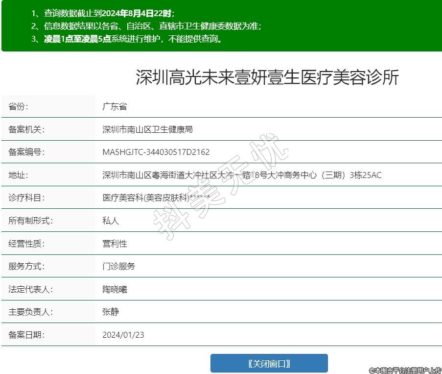 深圳高光未來壹妍壹生醫(yī)療美容診所,診療科目:醫(yī)療美容科(美容皮膚科)******