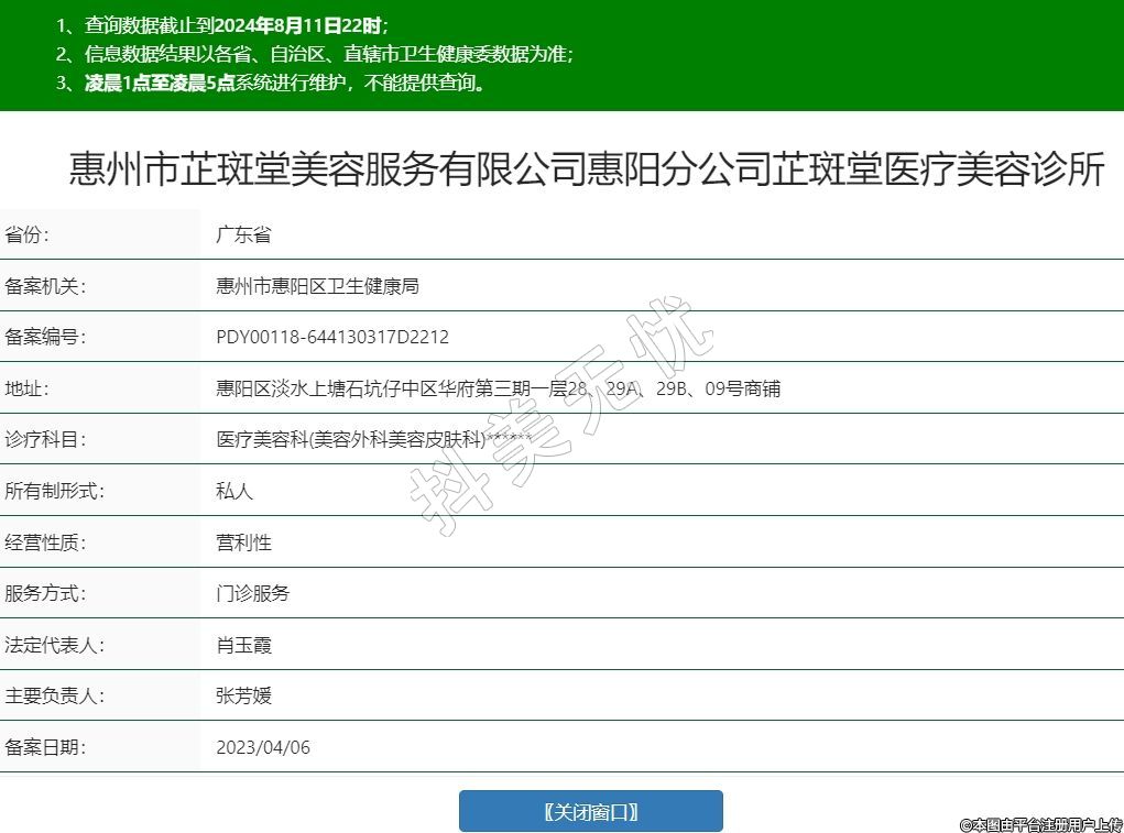 惠州市芷斑堂美容服務(wù)有限公司惠陽(yáng)分公司芷斑堂醫(yī)療美容診所