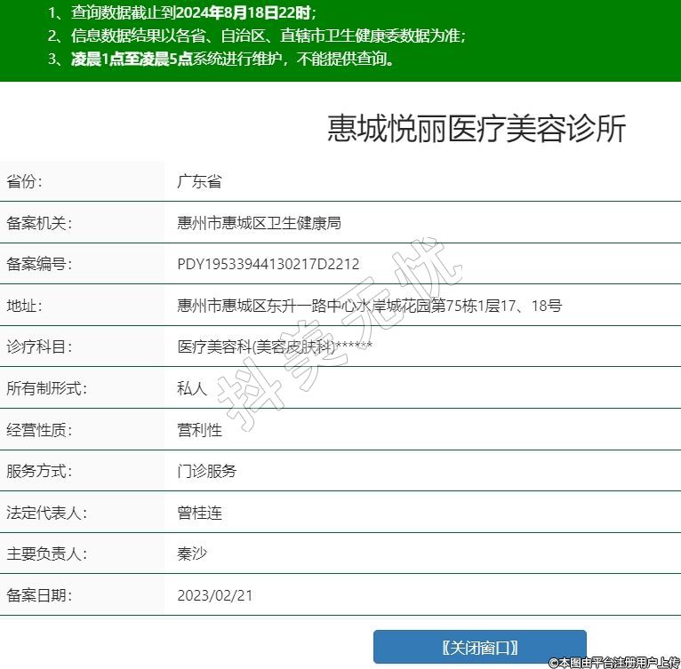 惠城悅麗醫(yī)療美容診所,診療科目:醫(yī)療美容科(美容皮膚科)******