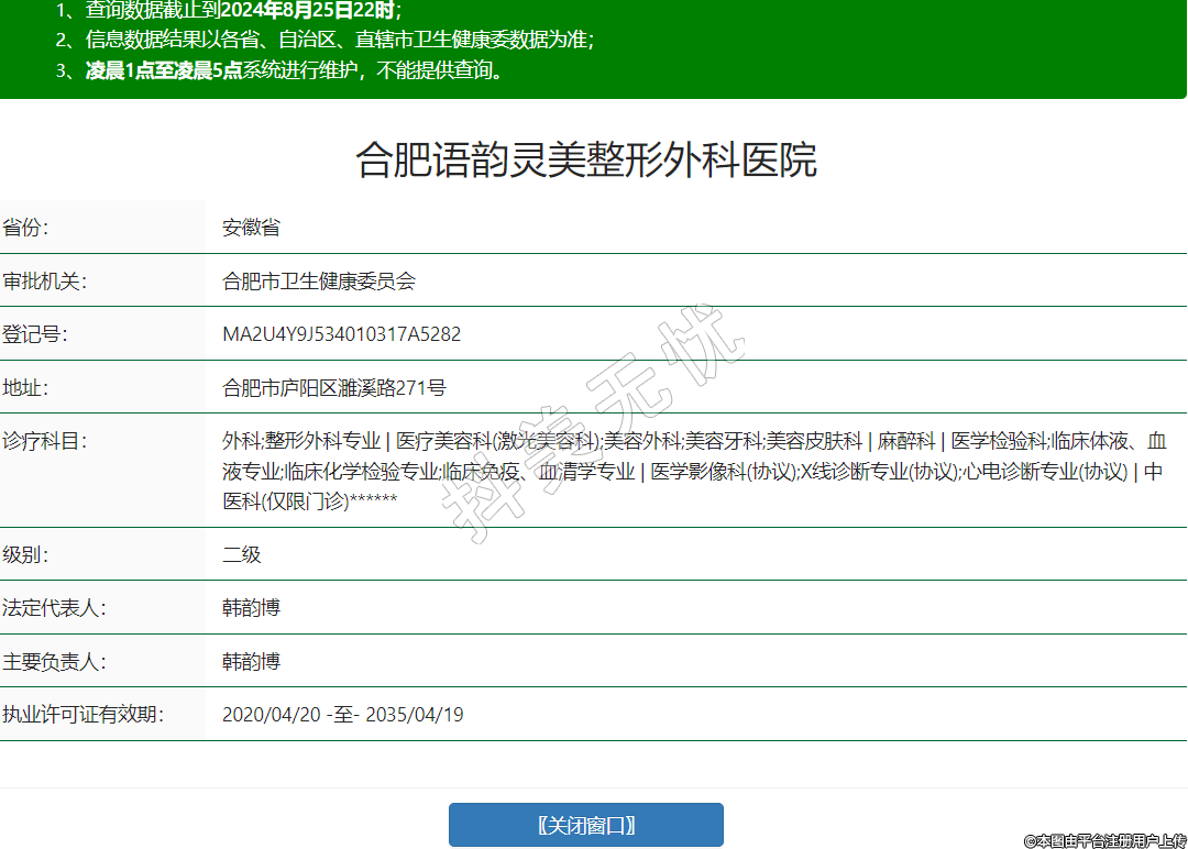 外科;整形外科專業(yè) | 醫(yī)療美容科(激光美容科);美容外科;美容牙科;美容皮膚科 | 麻醉科 | 醫(yī)學(xué)檢驗(yàn)科;臨床體液、血液專業(yè);臨床化學(xué)檢驗(yàn)專業(yè);臨床免疫、血清學(xué)專業(yè) | 醫(yī)學(xué)影像科(協(xié)議);X線診斷專業(yè)(協(xié)議);心電診斷專業(yè)(協(xié)議) | 中醫(yī)科(僅限門診)******