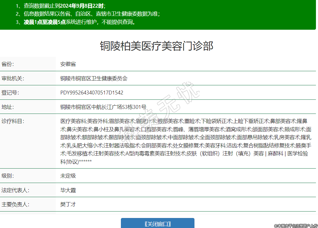 醫(yī)療美容科;美容外科;眉部美容術;眉提升術;眼部美容術;重瞼術;下瞼袋矯正術;上瞼下垂矯正術;鼻部美容術;隆鼻術;鼻尖美容術;鼻小柱及鼻孔美容術;口唇部美容術;唇峰、薄唇增厚美容術;酒窩成形術;頜面部美容術;頦成形術;面部除皺術;額部除皺術;顳部除皺術;面頸部除皺術;中面部除皺術;全面頸部除皺術;面部懸吊除皺術;乳房美容術;隆乳術;乳頭肥大縮小術;注射器法吸脂術;會陰部美容術;處女膜修復術;美容牙科;潔齒術;復合樹脂黏結修復技術;腋臭手術;毛發(fā)移植術;注射美容技術;A型肉毒毒素美容注射技術;皮膚(軟組織)注射(填充)美容 | 麻醉科 | 醫(yī)學檢驗科(協(xié)議)******