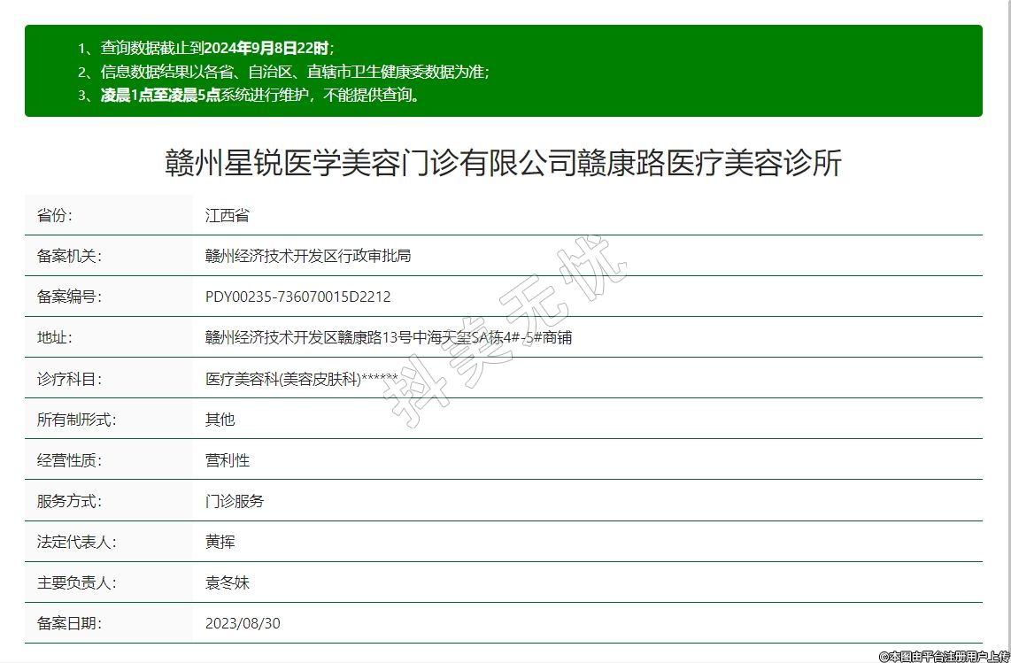 贛州星銳醫(yī)學美容門診有限公司贛康路醫(yī)療美容診所