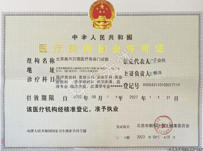 發(fā)證機(jī)關(guān):北京市朝陽區(qū)衛(wèi)生健康委員會