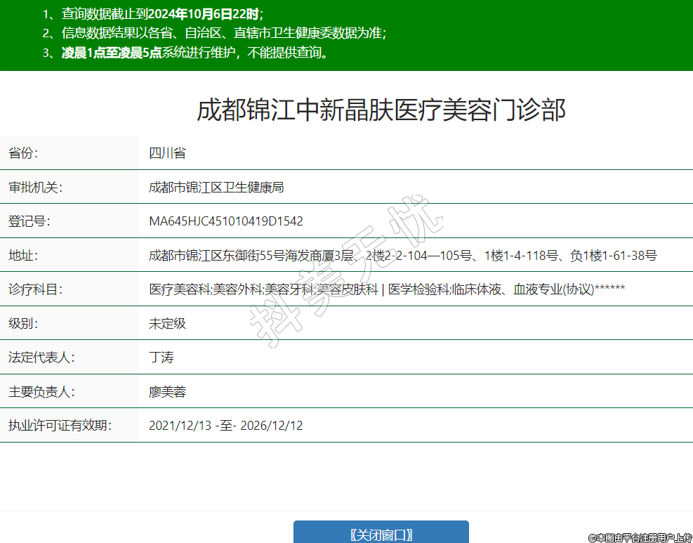 成都錦江中新晶膚醫(yī)療美容門(mén)診部