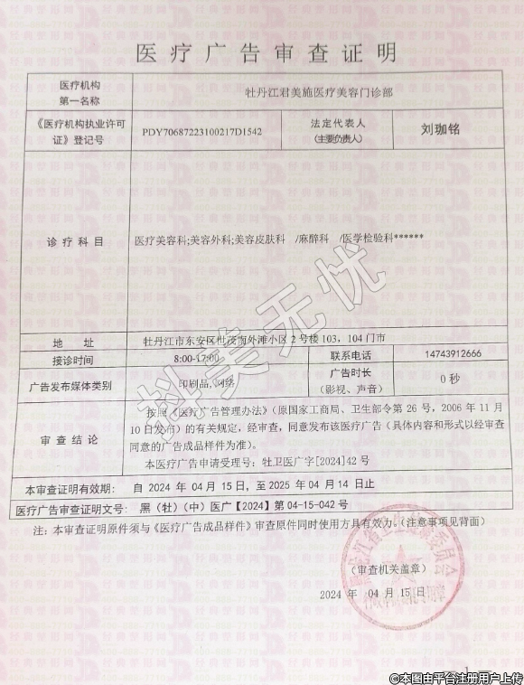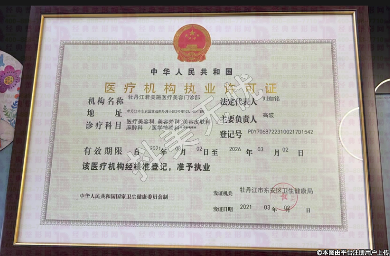機構名稱:牡丹江君美施醫(yī)療美容門診部