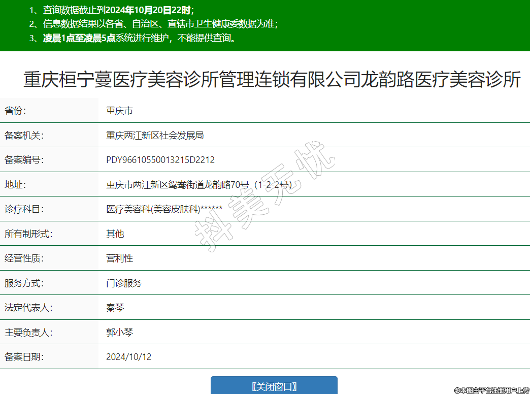 重慶桓寧蔓醫(yī)療美容診所管理連鎖有限公司龍韻路醫(yī)療美容診所