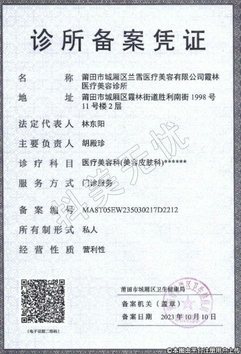 莆田蘭雪醫(yī)療美容成立于2021年,位于莆田市城廂區(qū)霞林街道勝利南街1998號(hào)11號(hào)樓。機(jī)構(gòu)專注于醫(yī)療美容和生活美容,致力于為大眾的靚麗提供高效的一站式美容方案。