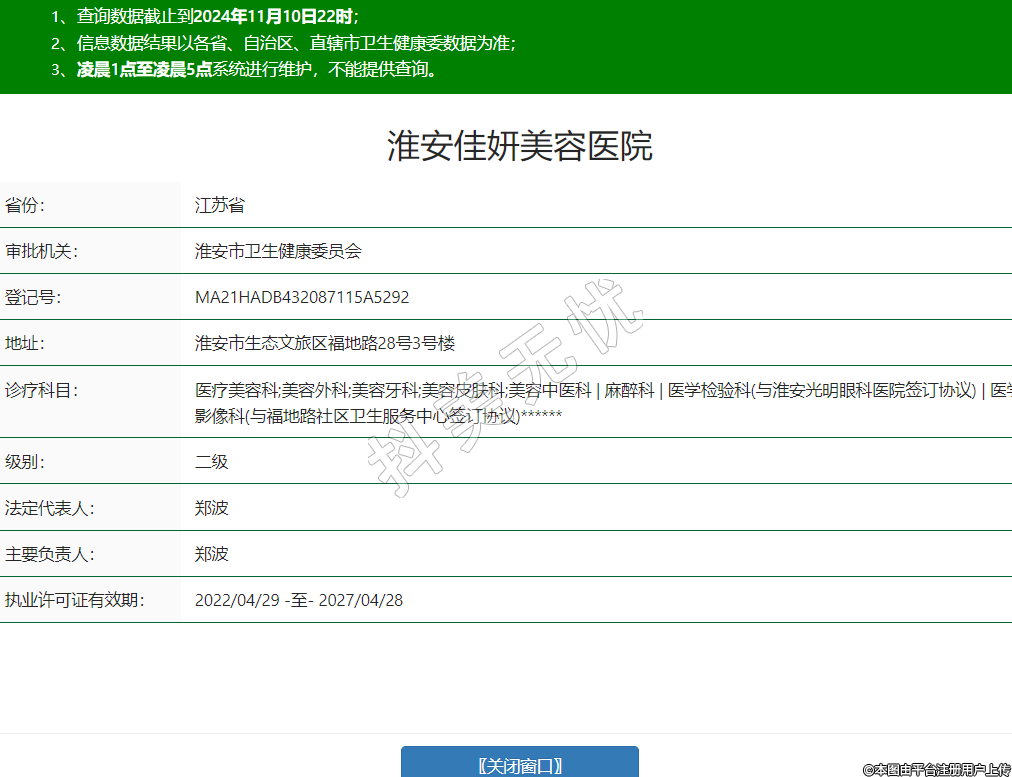 醫(yī)療美容科;美容外科;美容牙科;美容皮膚科;美容中醫(yī)科 | 麻醉科 | 醫(yī)學(xué)檢驗科(與淮安光明眼科醫(yī)院簽訂協(xié)議) | 醫(yī)學(xué)影像科(與福地路社區(qū)衛(wèi)生服務(wù)中心簽訂協(xié)議)******