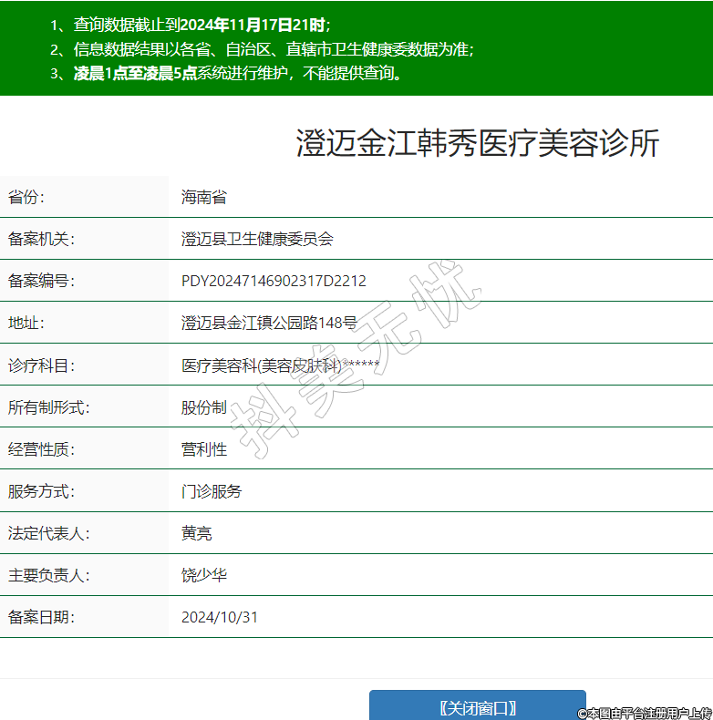 澄邁金江韓秀醫(yī)療美容診所,診療科目:醫(yī)療美容科(美容皮膚科)******