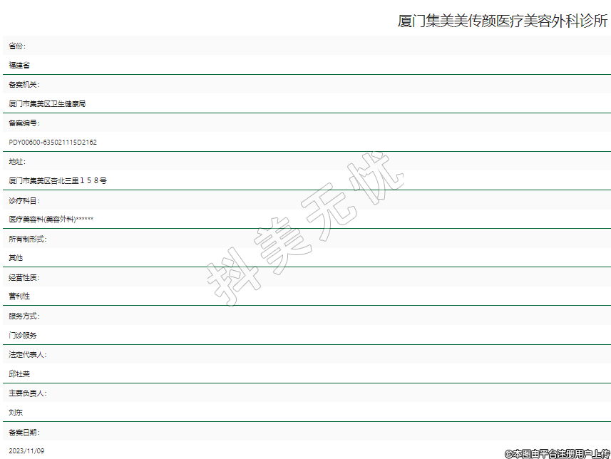廈門美傳顏醫(yī)療美容外科診所,地處于廈門市集美區(qū)杏北三里158號,于2023年創(chuàng)建。作為一家以醫(yī)療美容技術(shù)為核心的新型美容外科機構(gòu),我們高度重視與前沿醫(yī)療美容技術(shù)接軌,學習國際先進醫(yī)療理念和技術(shù)創(chuàng)新,引進高精尖設(shè)備,定期外出研修學習。美傳顏醫(yī)療美容外科以“以愛為源,以人為本”為服務(wù)宗旨,堅持以求美者為中心,以精湛技術(shù)為基礎(chǔ),以優(yōu)質(zhì)服務(wù)為載體,全心全意為求美者服務(wù)。