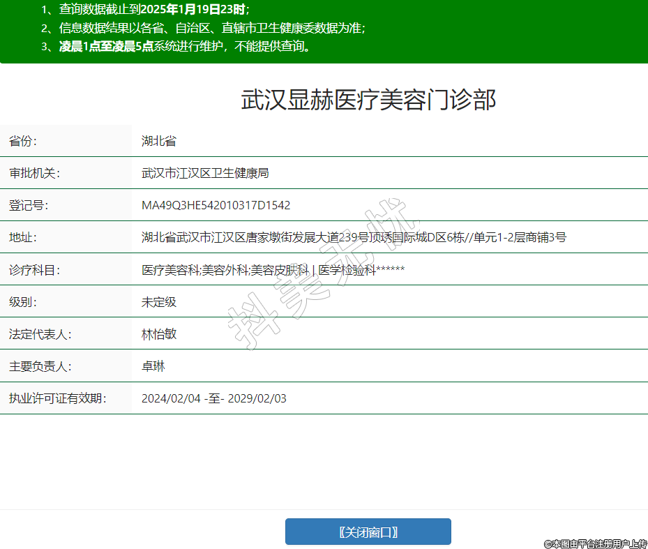 武漢顯赫醫(yī)療美容門診部,診療科目:醫(yī)療美容科;美容外科;美容皮膚科 | 醫(yī)學檢驗科******